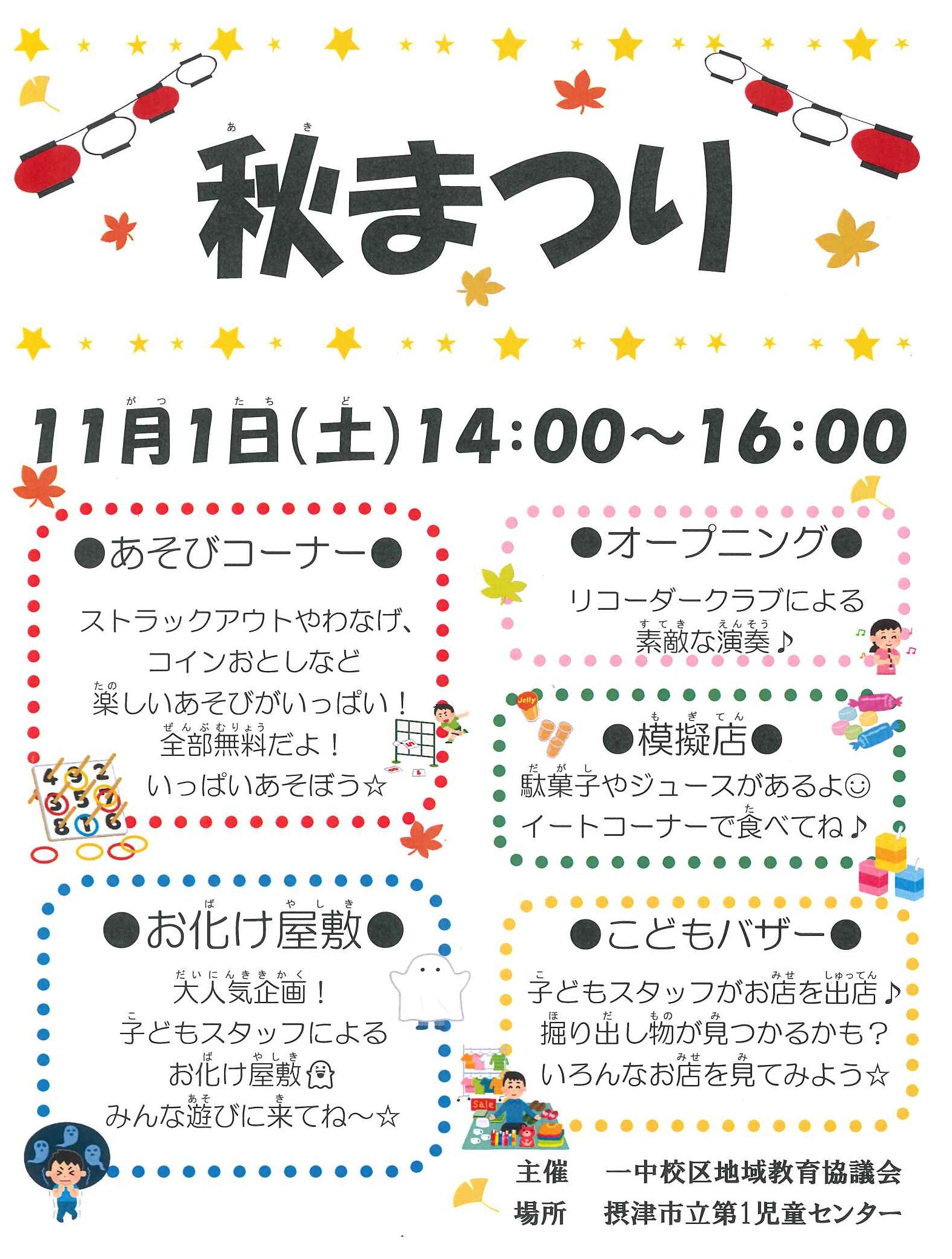 11月1日 (土) に児童センターで🏮あきまつり🏮を